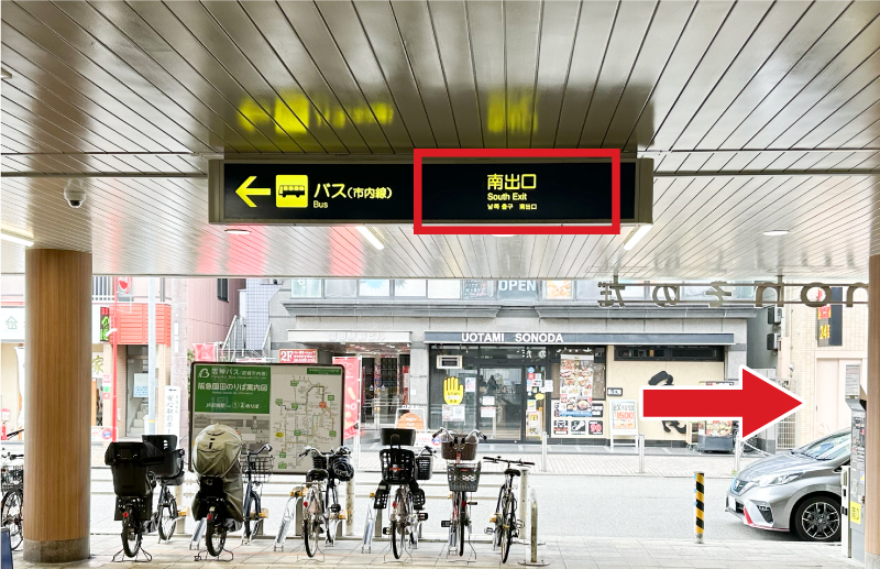 阪急「園田駅」改札を出て、南出口の方へエスカレーターを降ります。