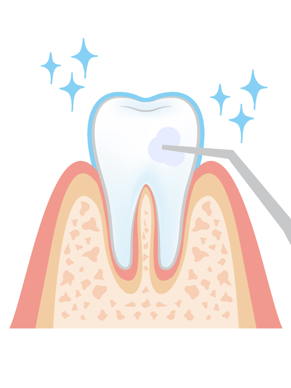 フッ素塗布を行うことにより、歯を虫歯菌がもたらす酸に対して抵抗力を高め、歯を丈夫にすることができます。乳歯や生え替わりすぐの永久歯は大人の方の歯に比べ、抵抗力が弱く虫歯になりやすいため、フッ素塗布はとても有効な処置の1つです。